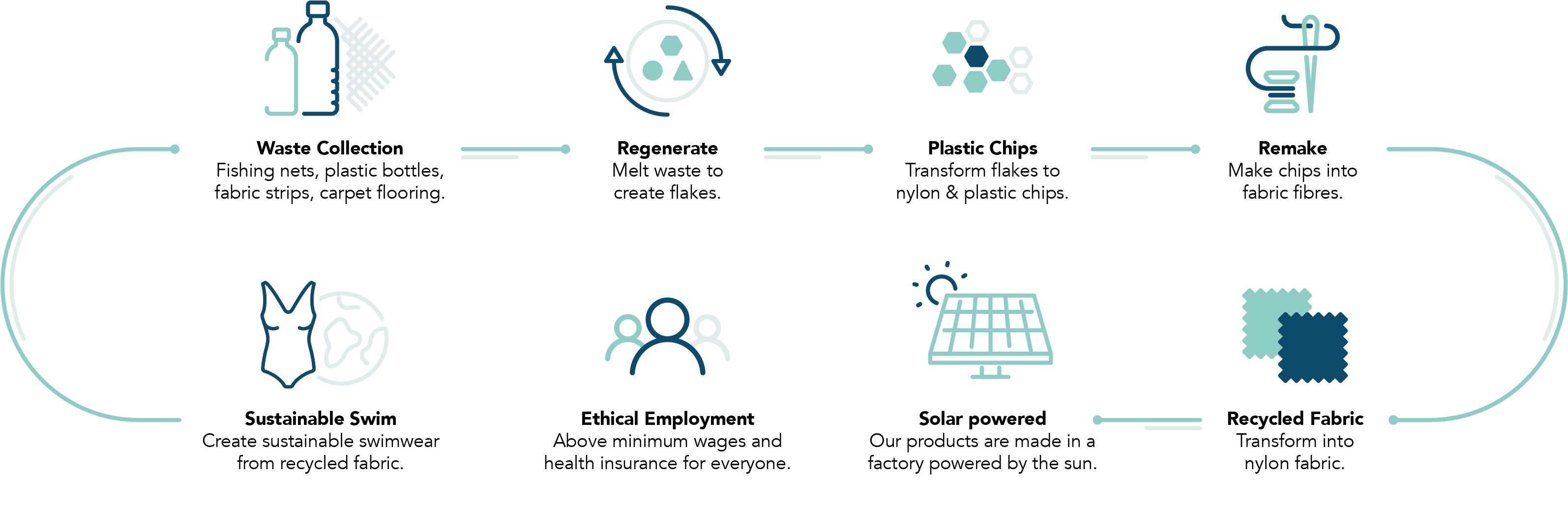 Our swimwear is thoughtfully crafted using eco-friendly materials, reducing waste and minimising our environmental footprint.